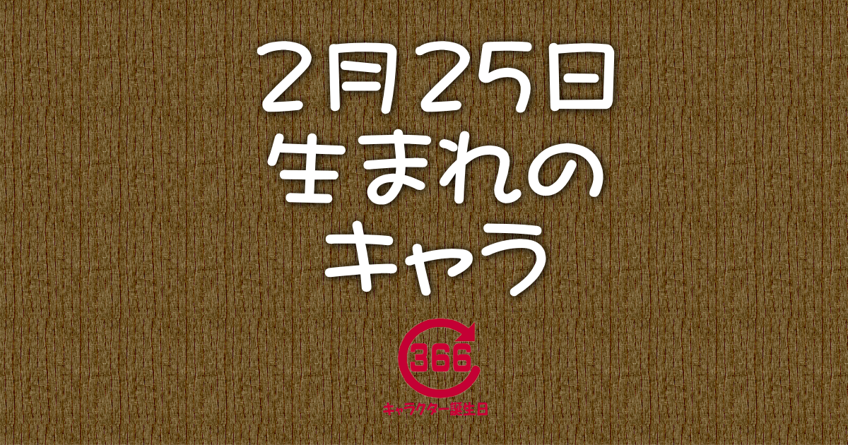 2月25日の誕生日情報 誕生日 2023.02.25 『2月25日』が誕生日のキャラクターは101名です。お誕生日おめでとうございます~☆ #夕刊紙の日 #箱根用水完成の日 2月25日 生まれのキャラクター誕生日情報2月25日生まれのキャラクターや星座、血液型、身長等を見ることが出来るサイトです。