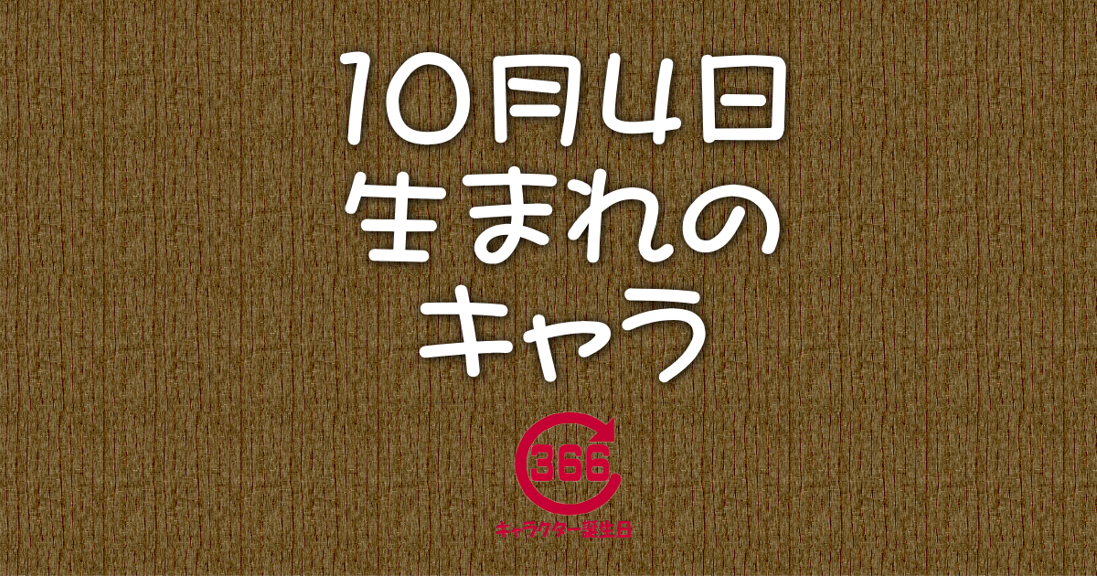 10月4日の誕生日情報 誕生日 2023.10.04 『10月4日』が誕生日の キャラクターは180名です。 お誕生日おめでとう #イワシの日 #陶器の日 #天使の日 #徒歩の日 #日本刀の日 10月4日 生まれのキャラクター誕生日情報10月4日生まれのキャラクターや星座、血液型、身長等を見ることが出来るサイトです。