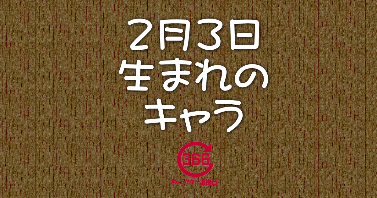 2月3日の誕生日情報 誕生日 2024.02.03 『2月3日』が誕生日の キャラクターは193名です。 お誕生日おめでとう #大豆の日 #大岡越前の日 #絵手紙の日 2月3日 生まれのキャラクター誕生日情報2月3日生まれのキャラクターや星座、血液型、身長等を見ることが出来るサイトです。