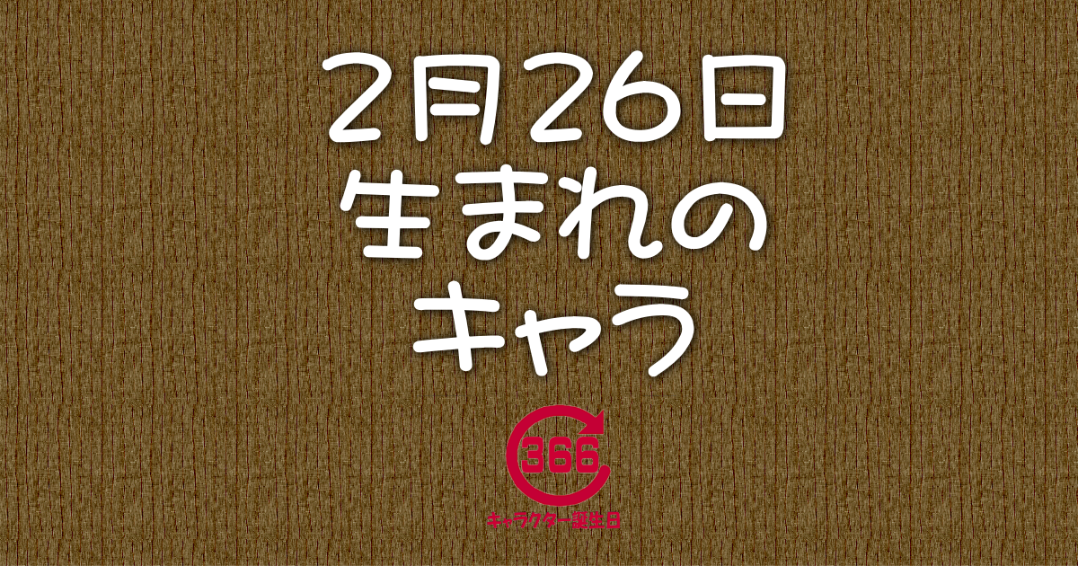 2月26日の誕生日情報 誕生日 2024.02.26 『2月26日』が誕生日の キャラクターは95名です。 お誕生日おめでとう #脱出の日 #包むの日 #ふろの日 2月26日 生まれのキャラクター誕生日情報2月26日生まれのキャラクターや星座、血液型、身長等を見ることが出来るサイトです。