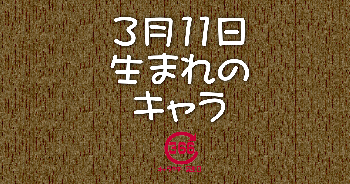 3月11日の誕生日情報 誕生日 2025.03.11 『3月11日』が誕生日の キャラクターは100名です。 お誕生日おめでとう #パンダ発見の日 3月11日 生まれのキャラクター誕生日情報3月11日生まれのキャラクターや星座、血液型、身長等を見ることが出来るサイトです。
