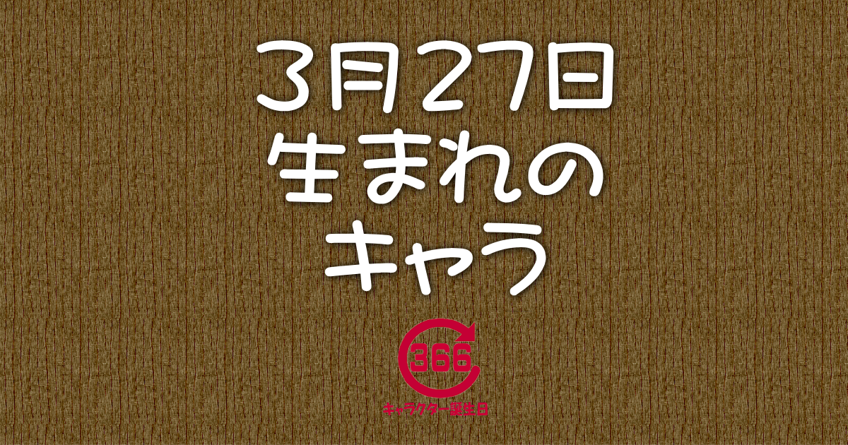3月27日の誕生日情報 誕生日 2025.03.27 『3月27日』が誕生日の キャラクターは178名です。 お誕生日おめでとう #さくらの日 #世界演劇の日 #仏壇の日 3月27日 生まれのキャラクター誕生日情報3月27日生まれのキャラクターや星座、血液型、身長等を見ることが出来るサイトです。