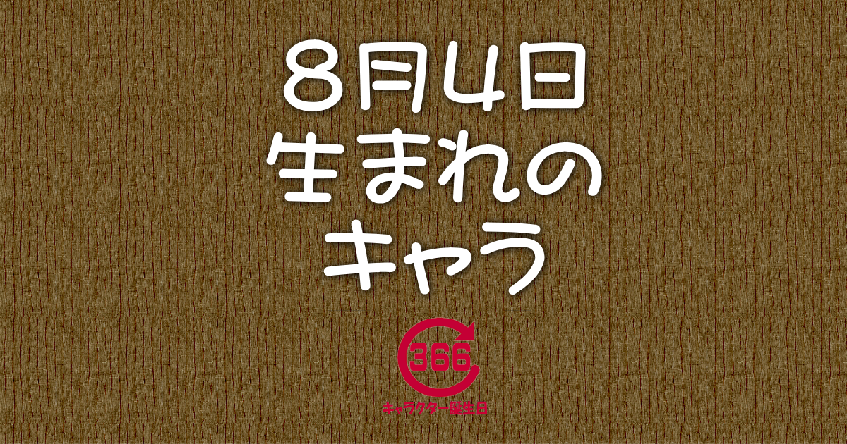 8月4日の誕生日情報 誕生日 2025.08.04 『8月4日』が誕生日の キャラクターは161名です。 お誕生日おめでとう #箸の日 #ビヤホールの日 #橋の日 #吊り橋の日 8月4日 生まれのキャラクター誕生日情報8月4日生まれのキャラクターや星座、血液型、身長等を見ることが出来るサイトです。