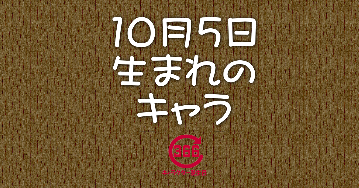 10月5日の誕生日情報 誕生日 2025.10.05 『10月5日』が誕生日の キャラクターは195名です。 お誕生日おめでとう #レジ袋ゼロデー #時刻表記念日 #レモンの日 10月5日 生まれのキャラクター誕生日情報10月5日生まれのキャラクターや星座、血液型、身長等を見ることが出来るサイトです。